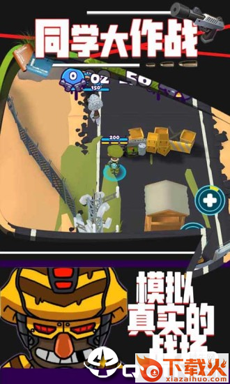 1、同学大作战是一款非常火爆的吃鸡射击游戏,在游戏中只要与队友不断的磨炼默契度;