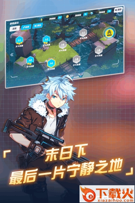 末日的地平线是一款以卡通二次元会人物立绘的射击对战的游戏,在游戏中,玩家们将会扮演一位萌娘,开始吃鸡生存的行动。在这里,你是可以联盟战斗,可以单打独斗,你的敌人不是别人,正是那些和你一样被空降下来的其他玩家。你要么躲藏,要么反击,请开始你的表演吧。