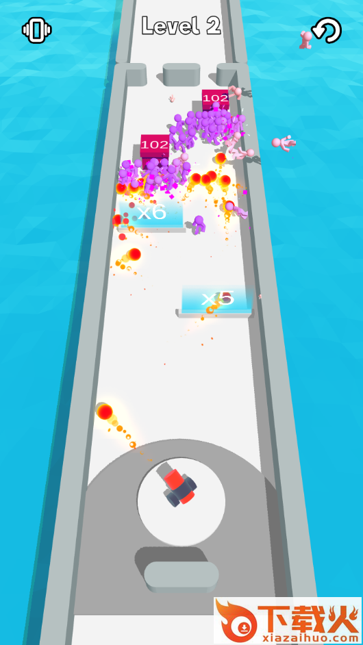 玩家要控制上方的道具,然后瞄准下面的人群进行投掷,阻止它们的前进。当小人数量越来越少,意味着你游戏即将胜利。游戏中有很多关卡可以去挑战,玩起来十分有趣。
