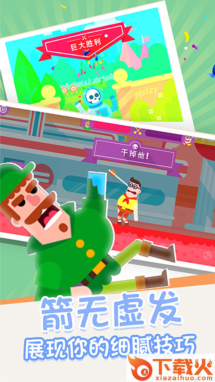 休闲益智玩法射击对战游戏,玩家将会操控着自己的弓箭手角色,在游戏中对着你的对手发动攻击,你是否能够轻松地击败你的对手呢?不同的角色拥有不同的能力,投掷使用的武器也是不同的,快去尝试使用多种武器装备!