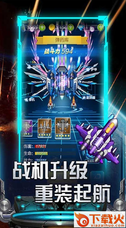 7、通过升级来提高战机性能,等级越高输出伤害越大,可以更的完成任务了。