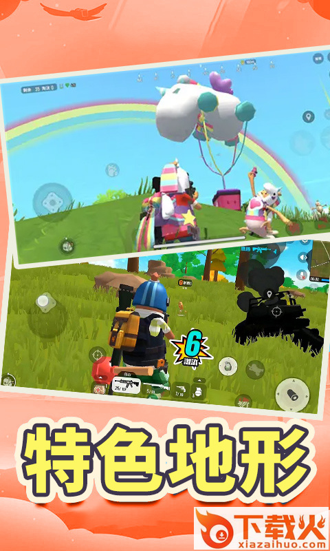 联盟神枪手,一款卡通香肠人射击吃鸡游戏。开局跳伞选择你的降落地点,拾取满地的宝箱,各个枪支武器获取,集结队友运用战术挺进决赛圈成功吃鸡吧。