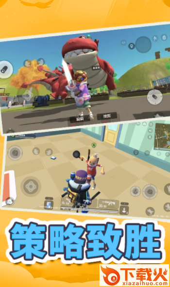 2、创建各种卡通地图场景,在竞技挑战中完成所有目标和任务,使用高级武器。