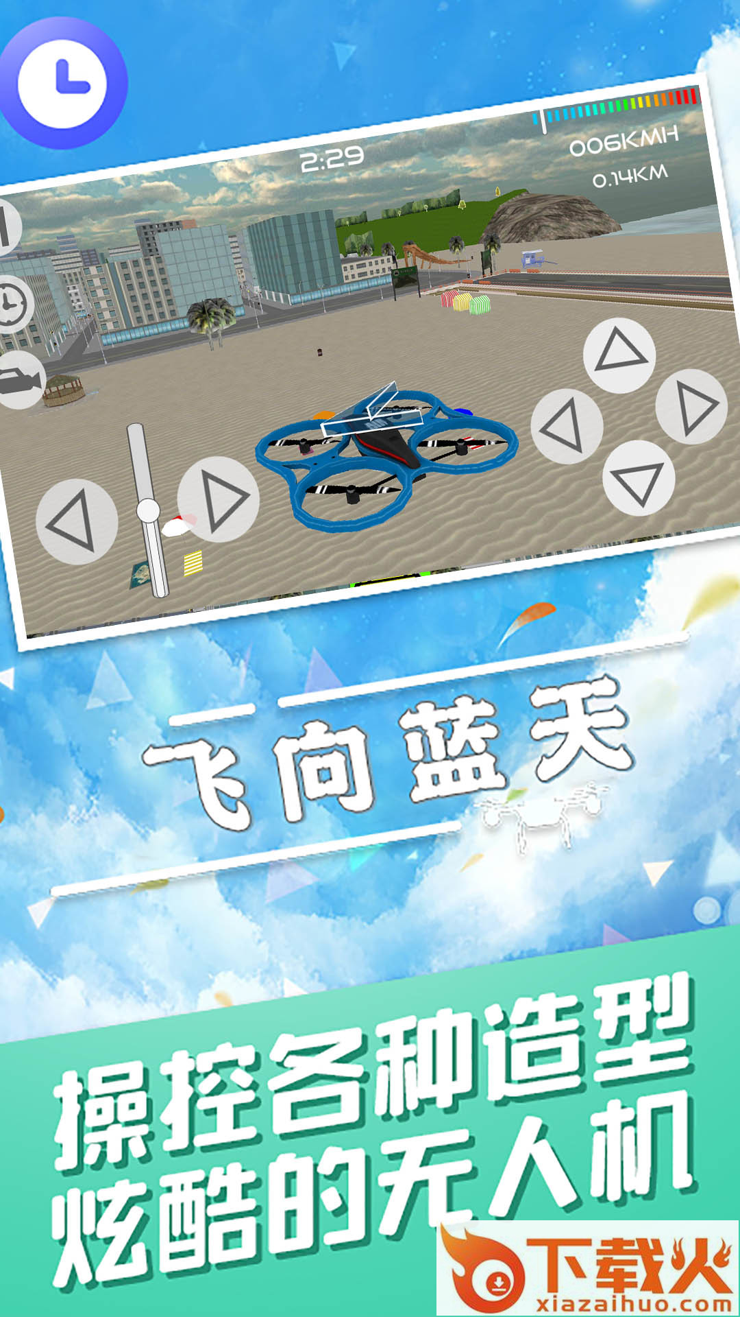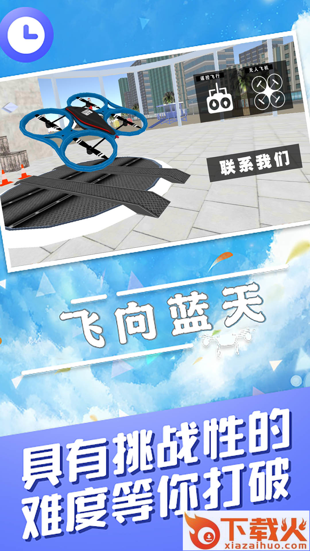 飞向蓝天游戏,一款模拟无人机飞行小游戏。游戏中玩家解锁更多无人机不断飞向蓝天,更多的趣味地图开启,解锁不同无人机,真实环境操控,考验你的驾驶技术。