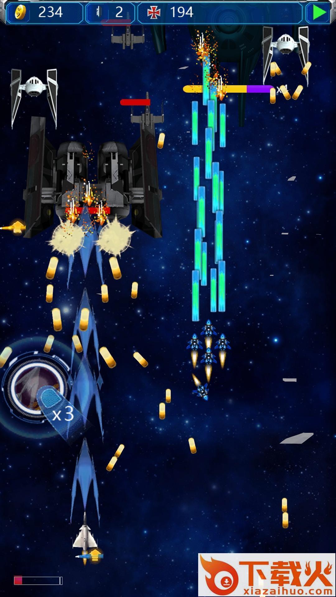 3、游戏弹幕:游戏的玩法是弹幕射击,弹幕射击在当时有很多的同类型的游戏,而远征战机这款游戏无意是最优秀的,