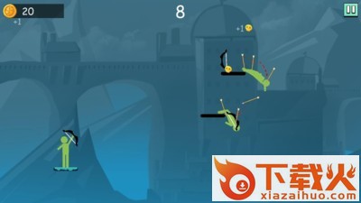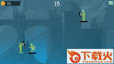 2、这款射箭类闯关游戏是以经典的火柴人为题材的,火柴人形象设计非常简约。