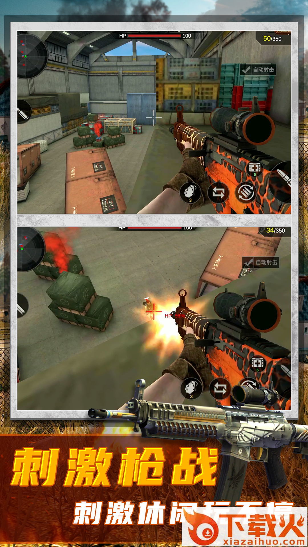 超级神枪手2,真实射击对抗游戏。游戏模拟射击战场,解锁不同的枪支武器,搜集更多装备道具,战场射击生死较量,瞄准更多目标,射击爆头吧。