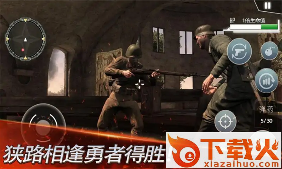 《武装战争火线对决》是一款以架空世界战争为背景题材的第一人称射击游戏,玩家将扮演一位被敌军俘虏的盟军士兵,在敌人的集中营中突破敌人的重围,带领友军士兵夺回被占领的城市!游戏关卡非常丰富,玩法多样,你可以在纷飞的战场中使用冲锋枪与敌人正面交锋,使用经典的98K于千米之外消灭敌军将领,甚至使用匕首暗杀或手雷轰炸花式过关!