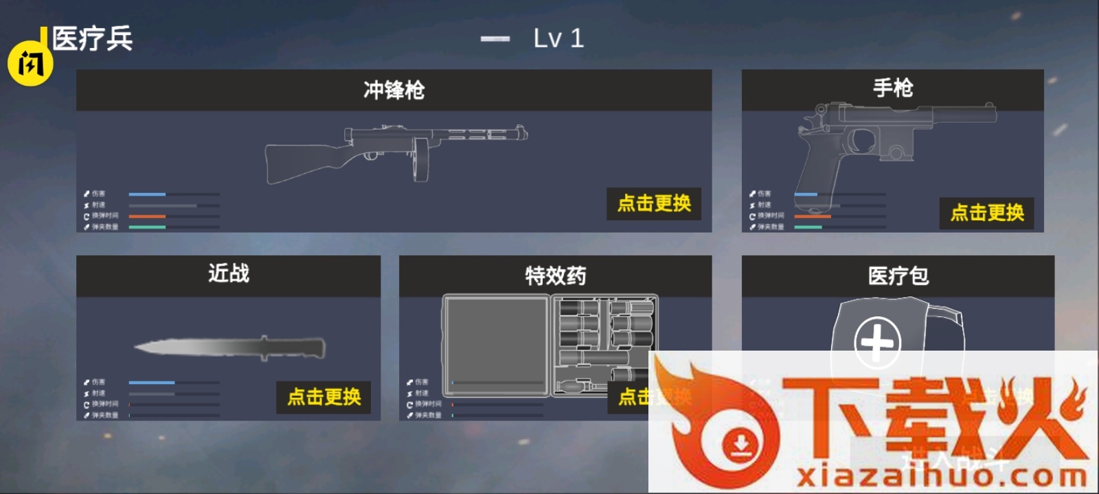 游戏内主武器36把主武器,14把副武器,22种配件等等。喷火器,RPG,医疗包,弹药包,kar98狙击步枪,扳手,狼牙棒等等特色武器供你选择。
