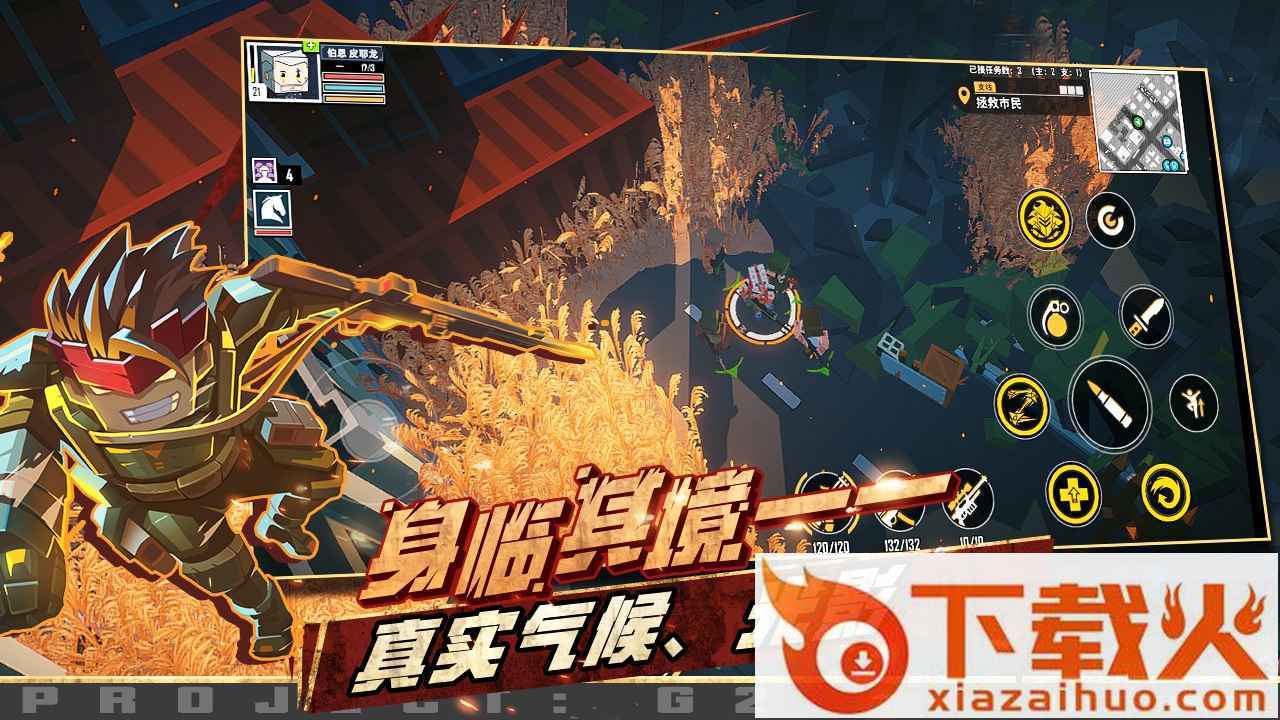 3、游戏画风以一种人畜无害的低多边形风格呈现出来,偏像素风格的Q版小人有种萌萌可爱的感觉,但实际上游戏体验确实十分的“疯狂”与“暴力”。在游戏中,玩家身为一名身经百战的基因特工,可以自由搭配、选择携带多种武器,在这个人类世界早已覆灭的末日背景下,杀出一条自己的生存之路。