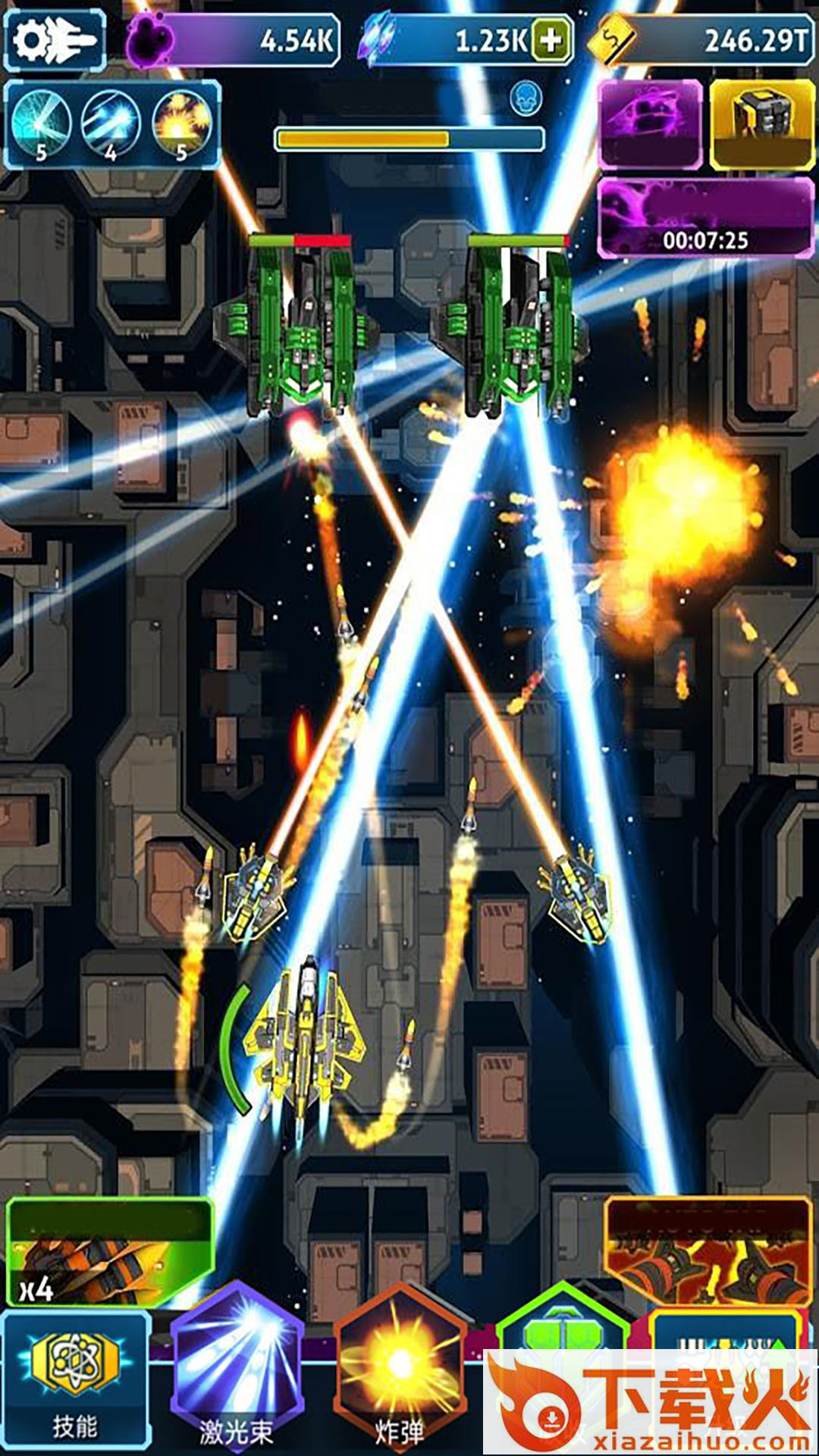 2、进入关卡战机将自动发射子弹