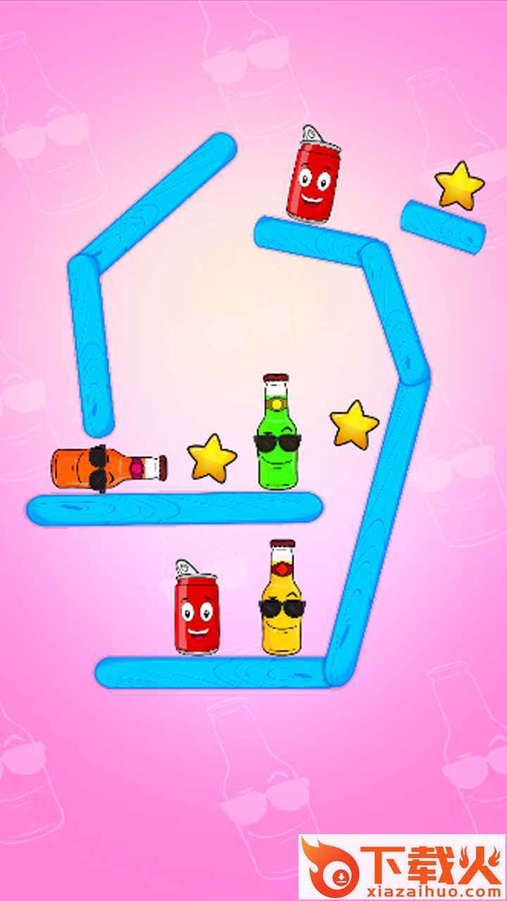 4、每一关出现的瓶盖都不一样,你需要用不同的消除游戏把它们全部翻过来。
