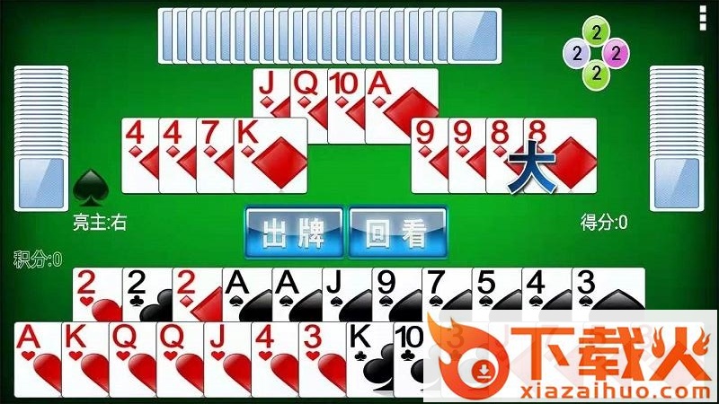 3、扑克中的王牌和2牌为常主,从3到A逐渐升级,每一级的此牌也为常主。大小顺序为大王>小王>变化的常主>2。(以下变化的常主统一用10代替)。