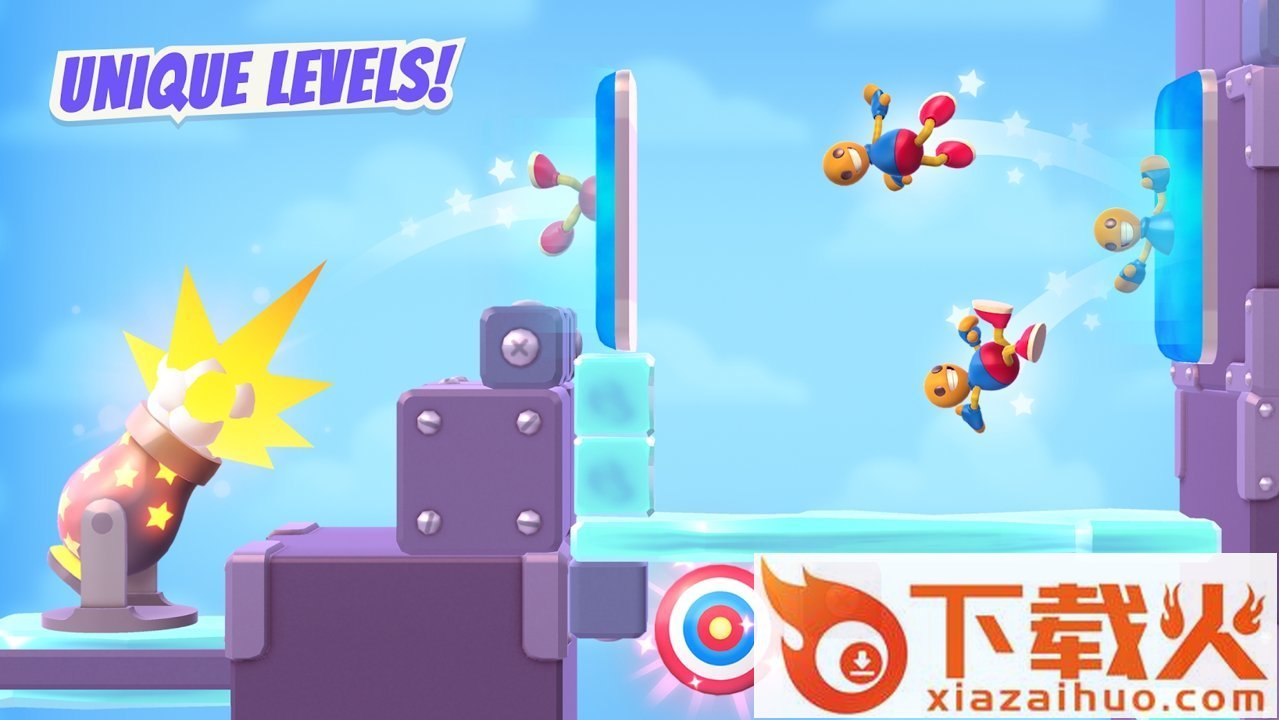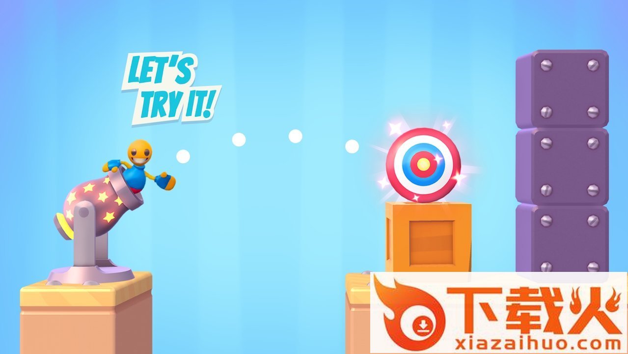 3、将这个开心的木偶人发射出去,击中隐藏在障碍中的靶子。