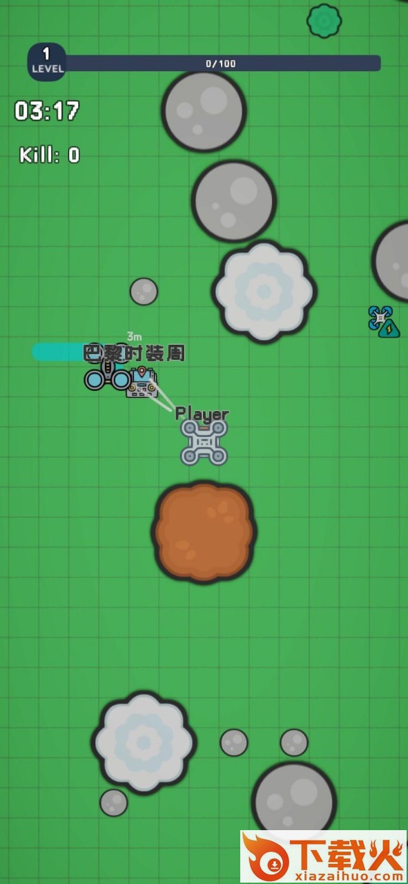 2、我们的目标是苟活着收集资源升级装备,然后偷袭制胜。