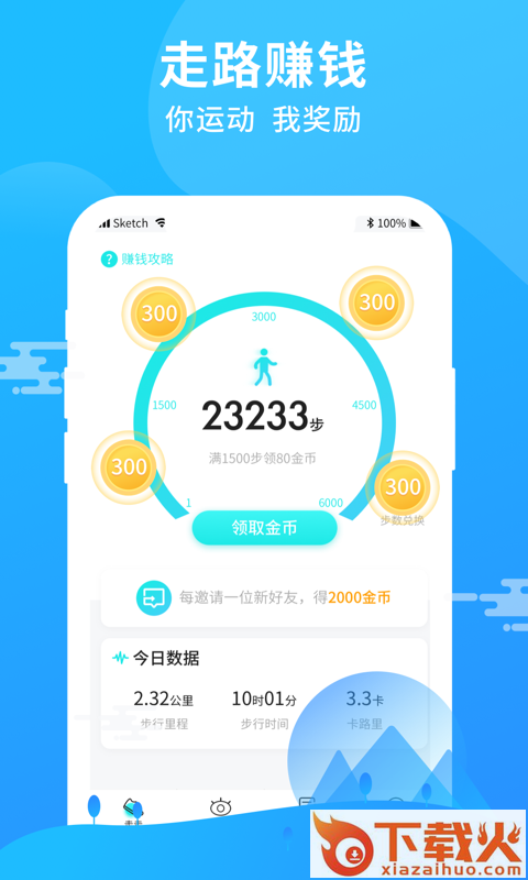 步多下载安装,一天走多少步数就可以赚多少钱,通过步数兑换金币赚钱,步多走路赚钱app让大家运动的同时还可以赚钱,提现更加方便,有需要就来下载。