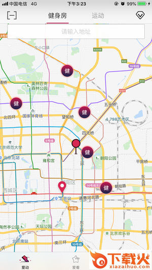 二、用户安装“爱动弹”APP,购买需要的团购卡或一卡通,通过地图功能选择可去消费的场馆,