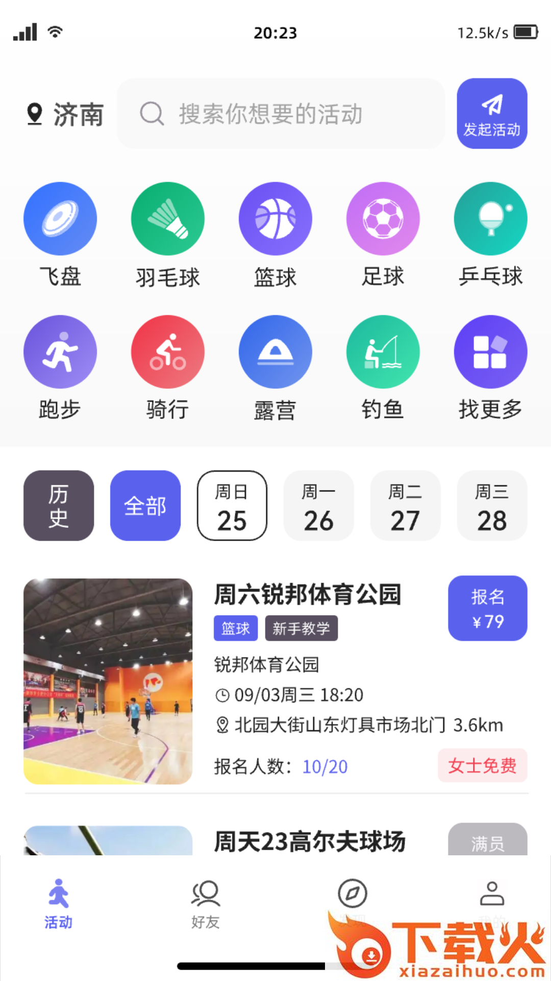 3、主要为爱好体育的人提供一个参与活动、结交朋友的平台。