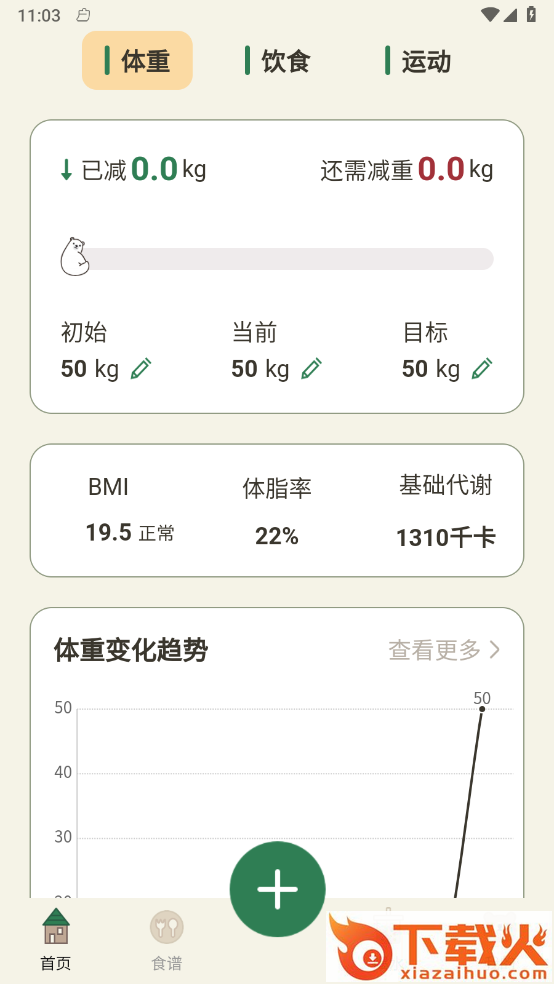 在APP中不仅可以进行生活日常的记录,还能下载采用减肥食谱,更好地控制体重