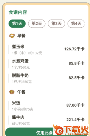 食谱种类多样,内容丰富,细分到每一天都有具体的食物分配哦