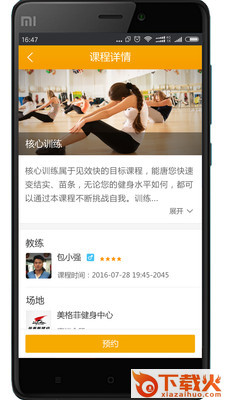 APP端提供所有教练、场馆和课程(团操课、小班课、私教课)的自主预约服务。