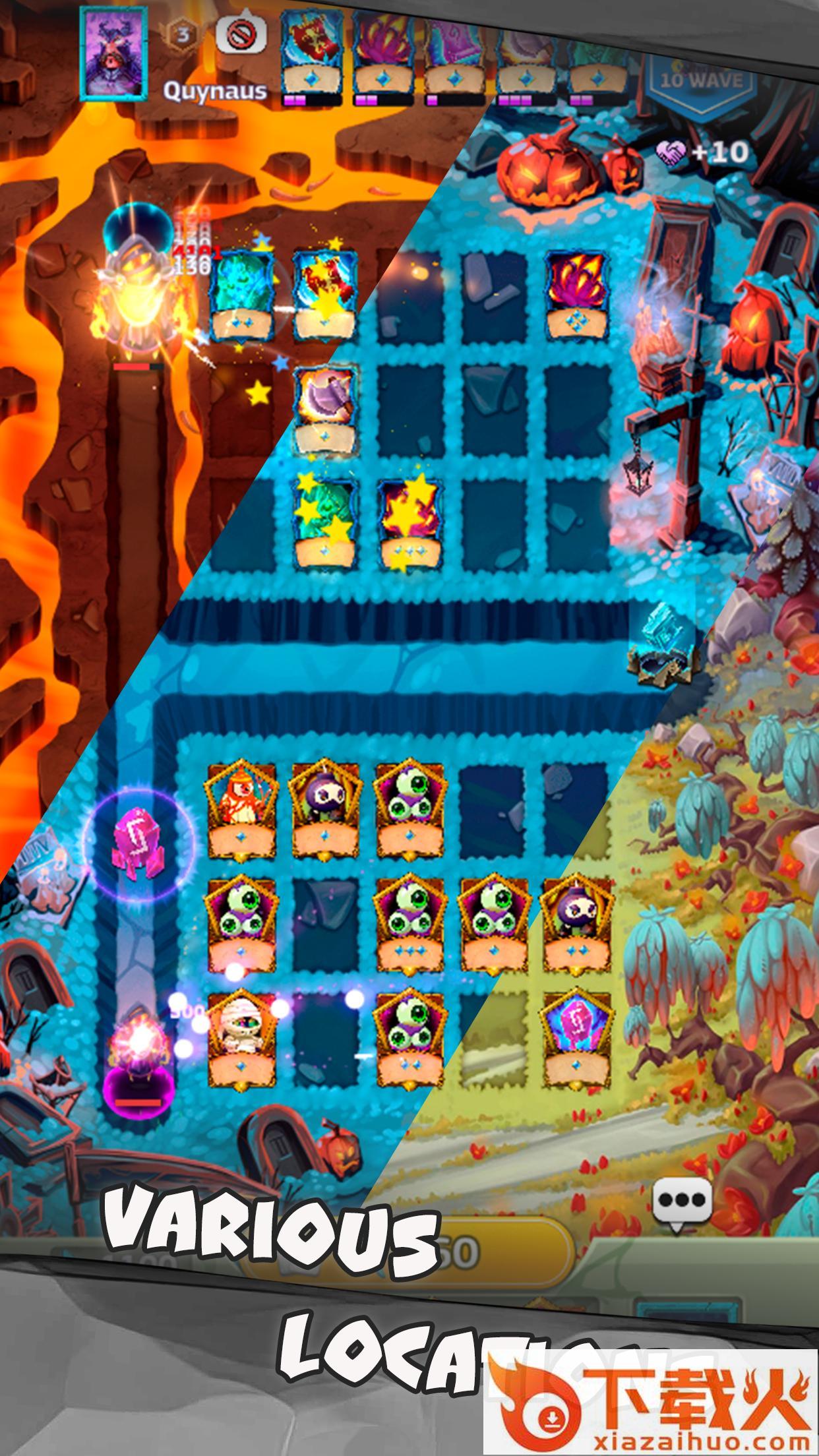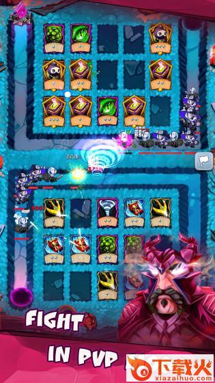 2、这使您可以对抗最大胆的怪物和敌人,收集和升级卡片以保护塔。