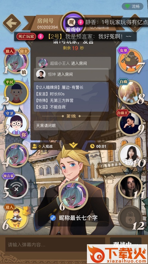 2、游戏基础功能:上警,竞选警长,警徽流,投票,放逐和其他狼人或神职技能。