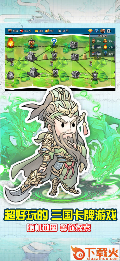 三国卡牌杀,一款卡通三国卡牌游戏,玩家进入三国冒险世界,3条冒险线路选择,更多的装备武器获取,升级英雄段位提升战力,不断打怪刷宝,更多精彩等你体验。