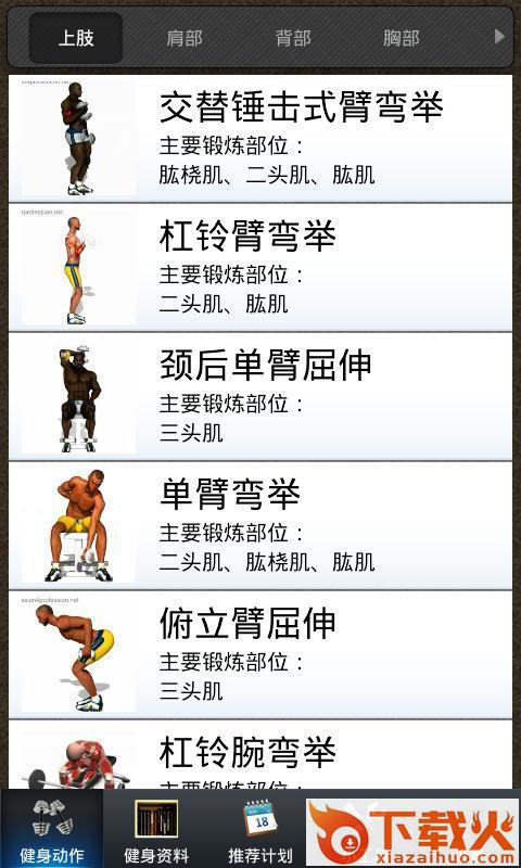 该软件是一款为初学者提供健身训练讲解的免费应用。从臂部,肩部,背部,胸部,腹部,臀部,下肢七大类型的动画演示,带给你直观的动作教学。