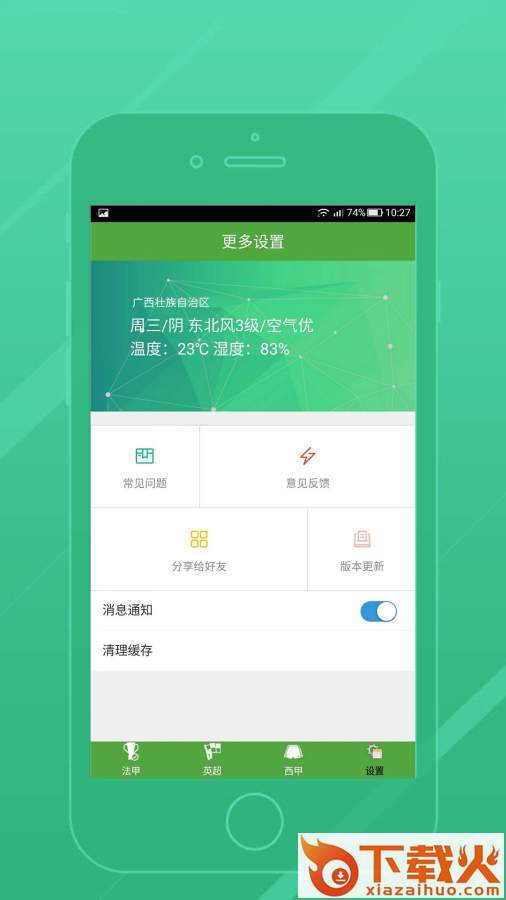2、系统设置。版本更新、消息通知、意见反馈、清理缓存等。