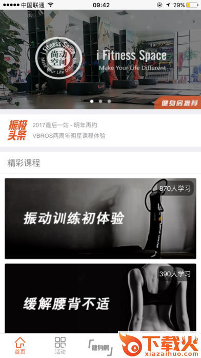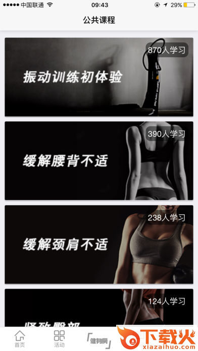5.课程:可免费观看振动训练课程和分解动作;可收藏自己喜欢的课程