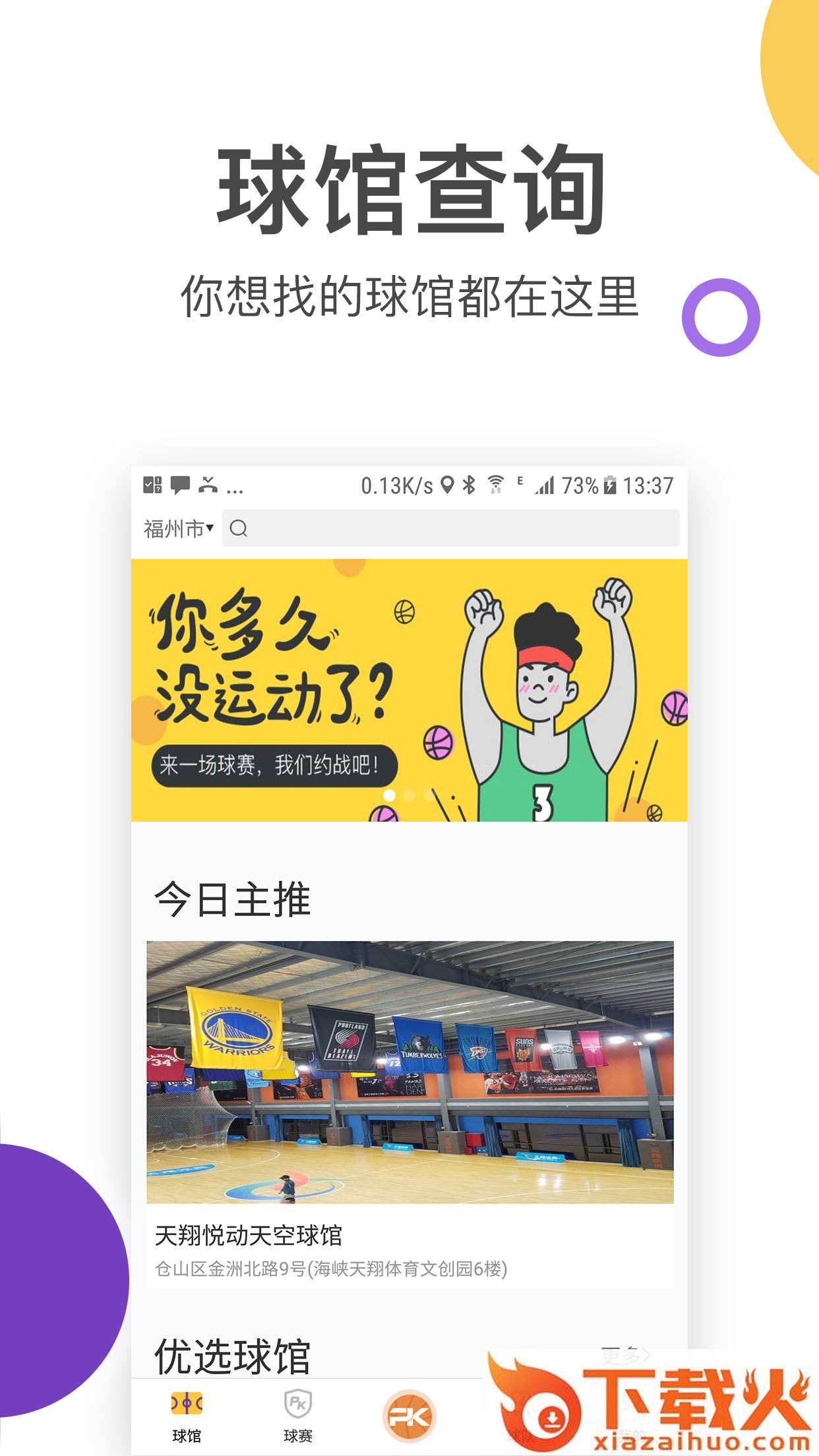 一场球赛是一款运动综合服务软件。使用一场球赛app,就能随时随地的进行球馆查询、约比赛、约队友,让你的运动变得更加便捷,觉得这款软件还不错的小伙伴快来下载吧!