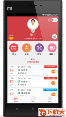 即时查看健身俱乐部近期的课程安排、私人教练的工作档期,在线预约课程,获悉课前提醒