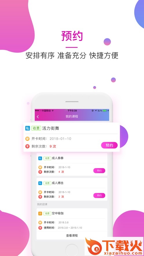 让俱乐部会员轻松健身,查询俱乐部课程、报课、消课、约私教等等,一键邀约,轻松搞定。