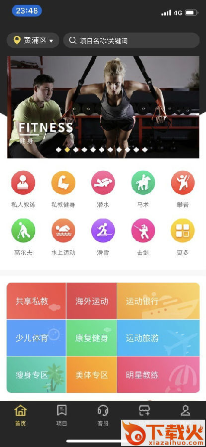 可进行查询所有或附近健身等体育运动项目等功能