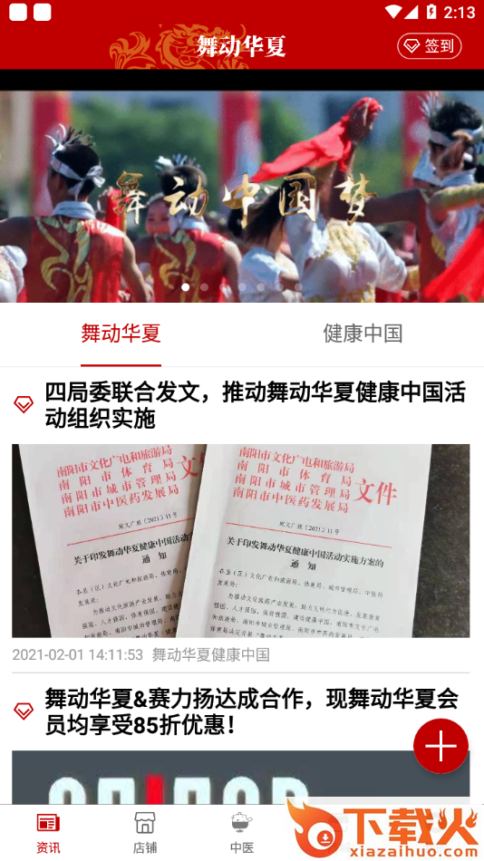 舞动华夏app是一款广场舞教练管理工具,软件拥有资讯,打卡签到,手机购物等等功能服务,可以帮助用户更好的运动健康生活。
