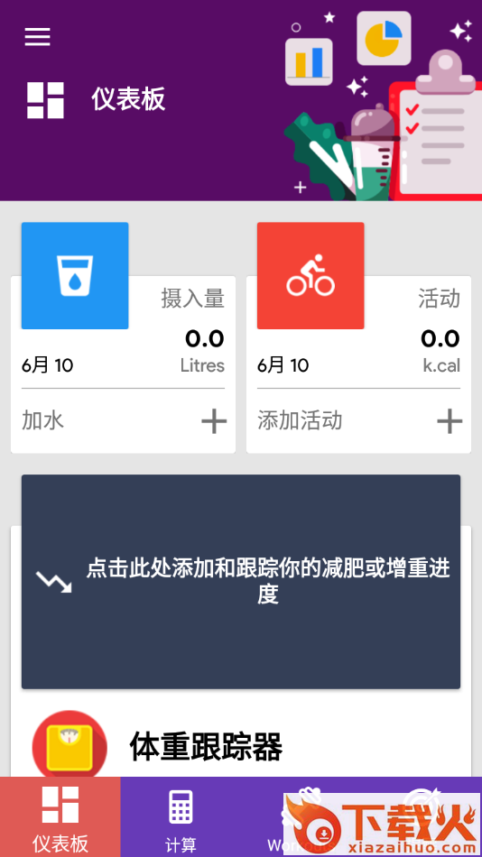 卡路里计数器、水摄入小工具、步数检测器、改进的图表