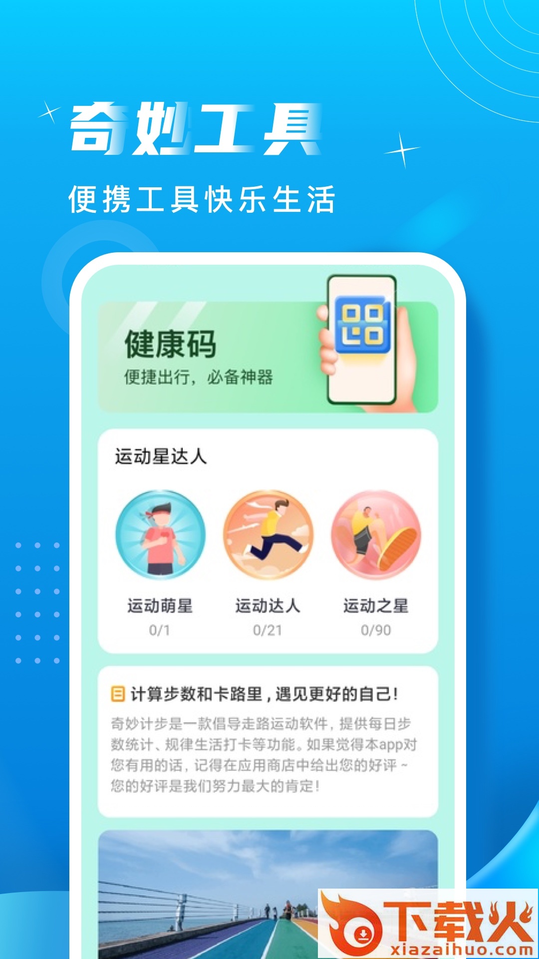 奇妙计步app下载,一款专业实用的运动健康综合助手,通过奇妙计步app记录每日运动数据,了解科学健康运动知识,搭配健康饮食,养成健康生活习惯,欢迎下载。...