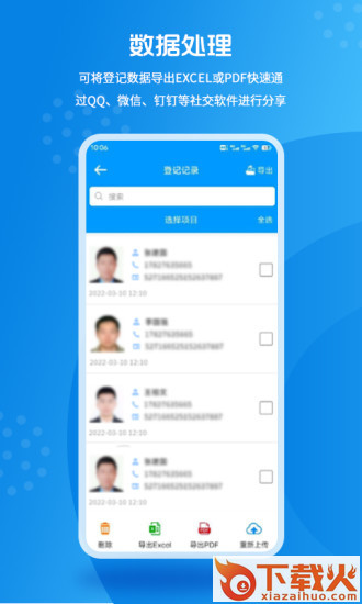 3、将登记数据导出Excel或PDF快速通过QQ、微信、钉钉等社交软件进行分享;
