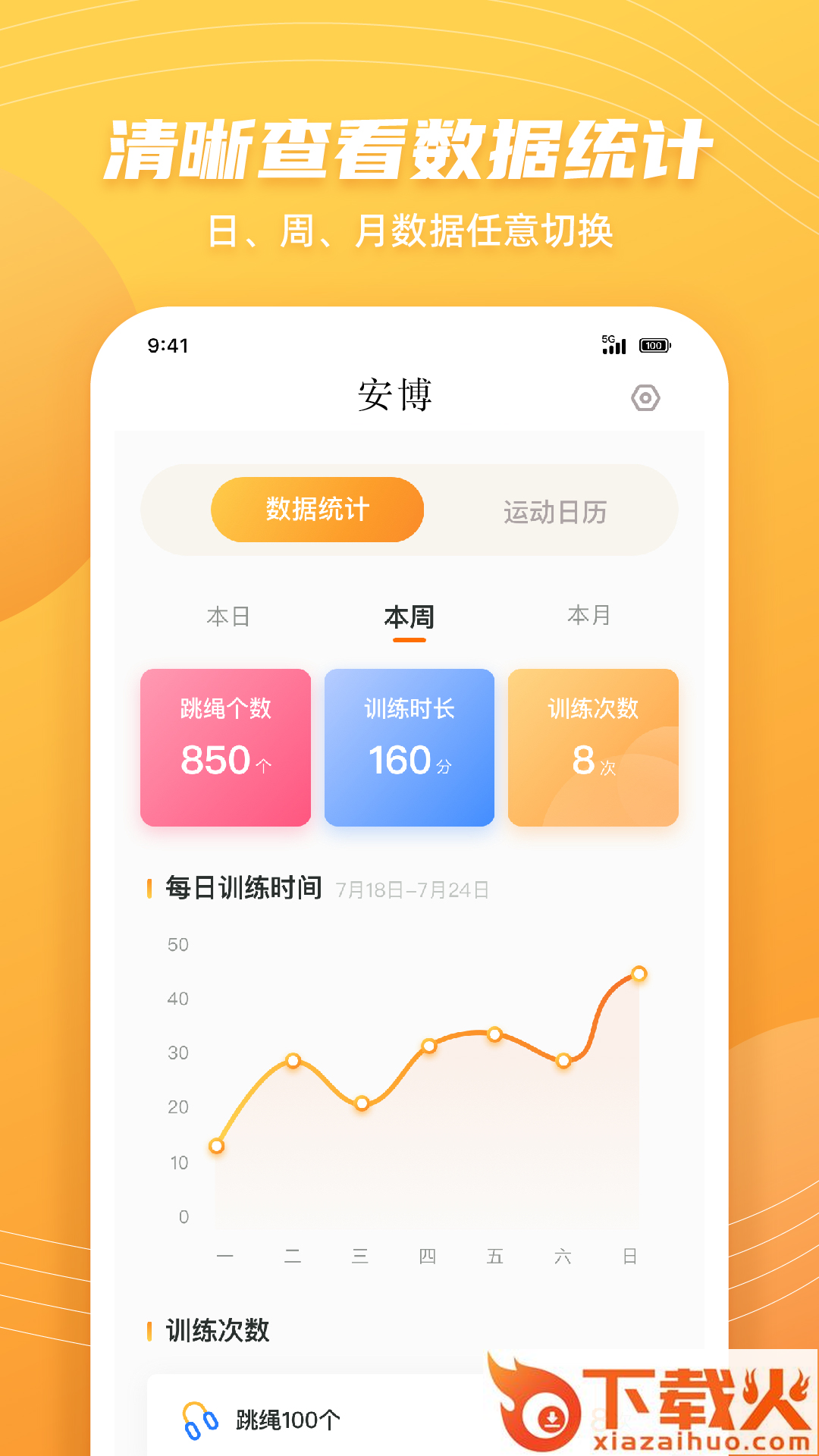 安姚博健身软件简称安博,帮助你更智能的记录每日跳绳,