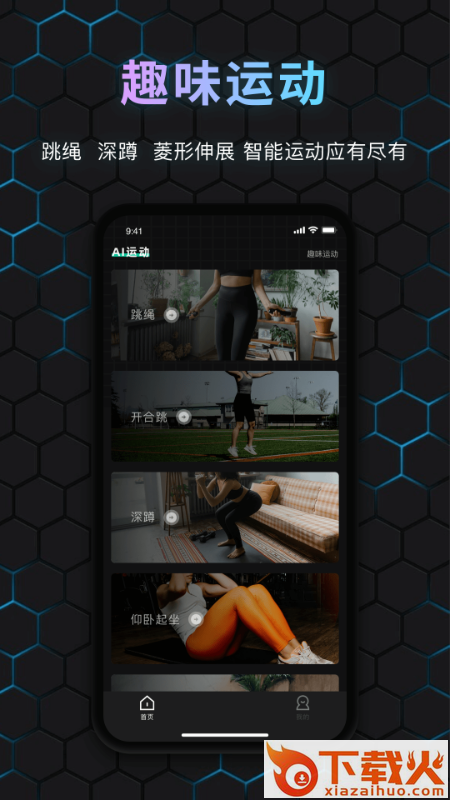 丰富多样的趣味运动项目包括跳绳、深蹲、菱形伸展等智能运动,让您享受健身的乐趣,同时加速燃脂效果。
