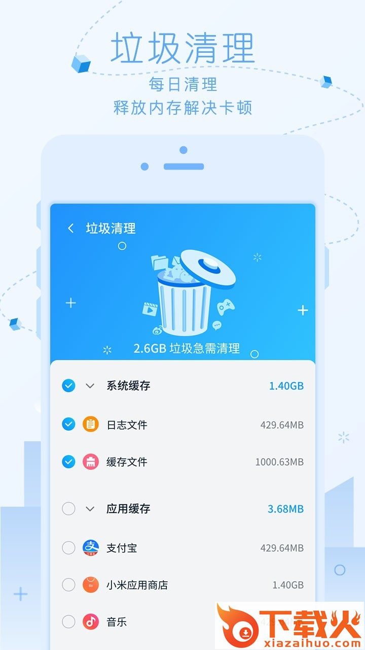 1、垃圾清理:删除不必要的数据以及缓存文件,有效的帮手机瘦身