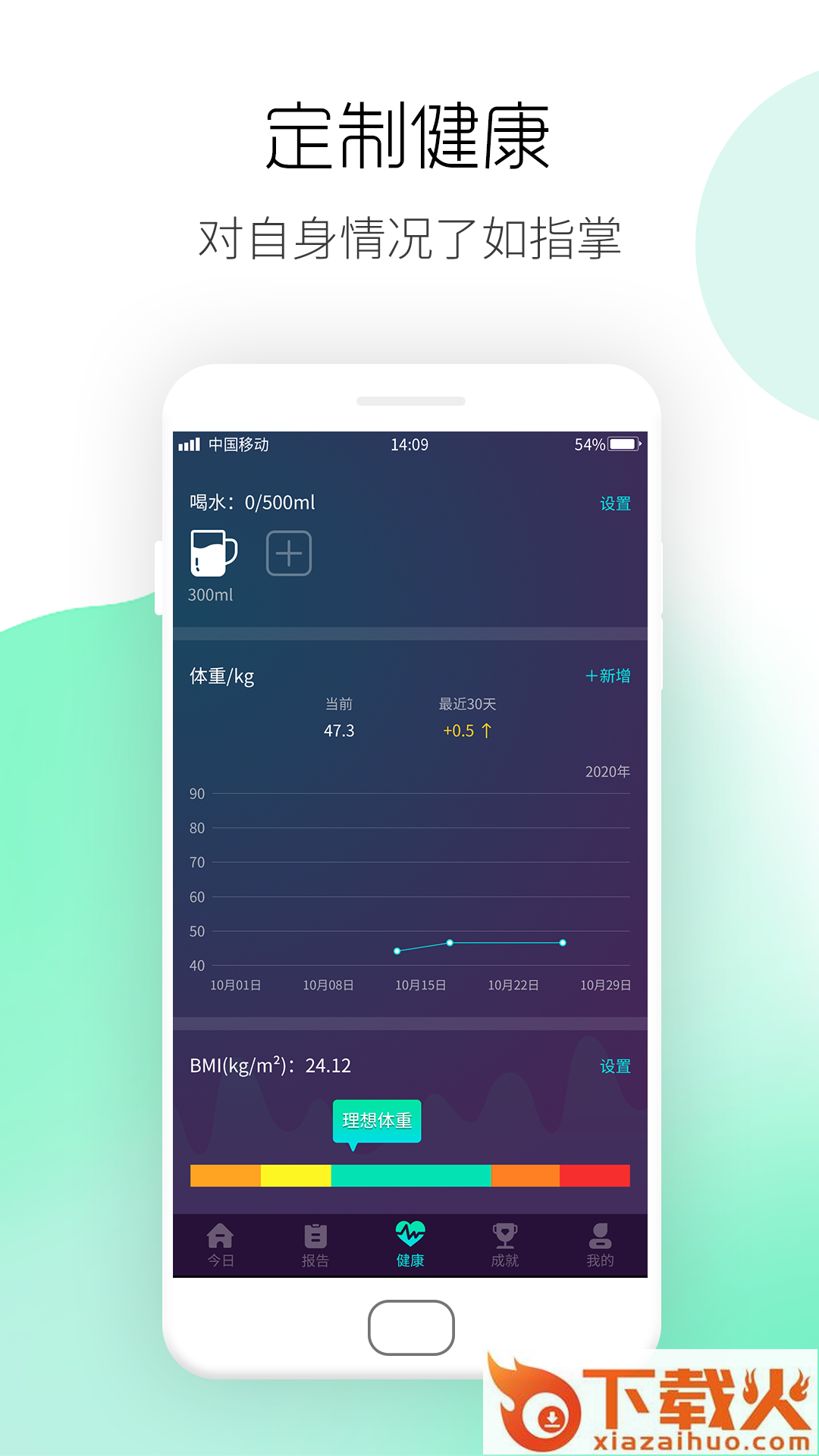 通过身高体重三围计算出BMI指数,根据身体数据提供每日科学运动量、饮水量等。