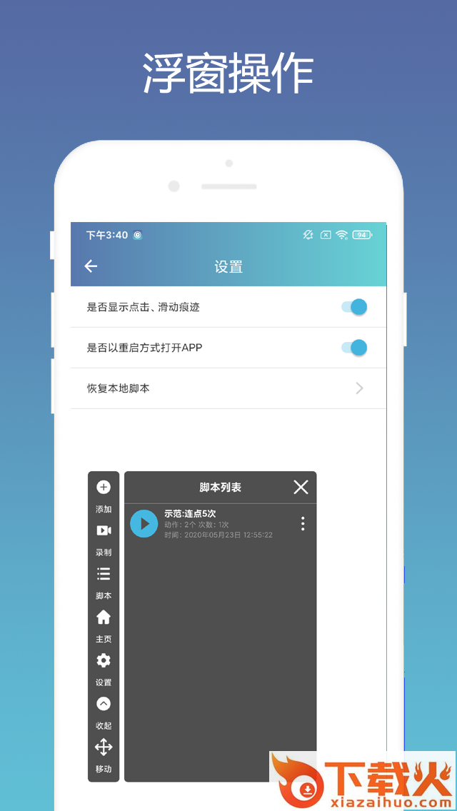 点击器免费版app,手机免费自动点击工具,支持自定义动作、共享、全局录制等多种功能,具备悬浮窗操作功能,使用简单,轻松实现点击、滑动、图片识别等功能。...
