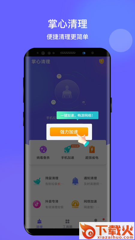 掌心清理这是一款非常实用的手机清理应用平台,在这里可以帮助用户更好的清理手机垃圾,释放内存,手机不再卡顿,玩游戏也能畅快自如,同时还为用户提供了病毒查杀、网络加速、通知清理等等服务功能。