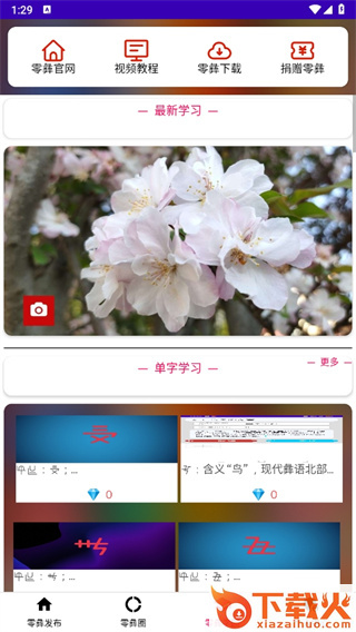 3、进入到零彝学园的页面可以进行单字、词组、综合学习;