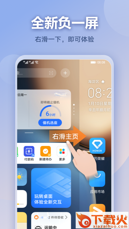 本负一屏App,是荣耀手机内置的桌面应用,一般手机除了主桌面外,向左滑动至手机桌面最左侧,即可开启一个不一样的综合类界面,拥有快速搜索、启动应用、速览提醒、资讯等功能。