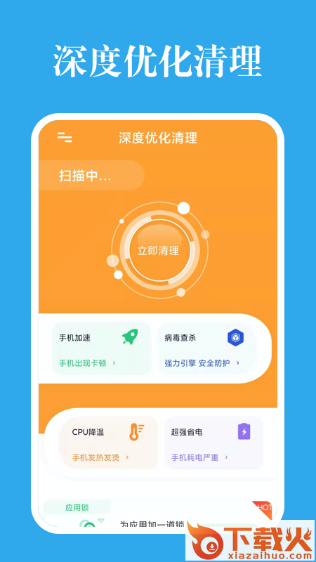 深度优化清理app是一款十分实用的手机清理软件。用户可以通过软件随时在线清理手机中的垃圾,还可以通过软件快速进行内存优化,病毒查杀,让用户手机运行更流畅,使用更安全。...