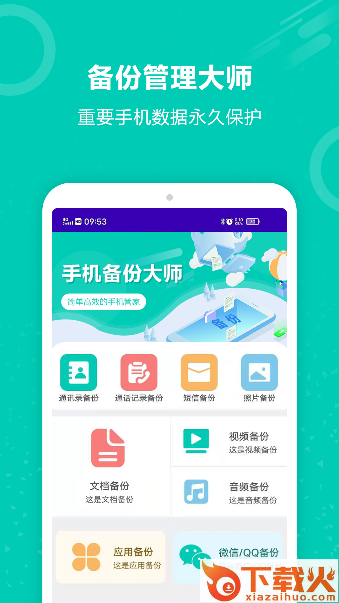 【备份管理大师】重要手机数据永久保护。
