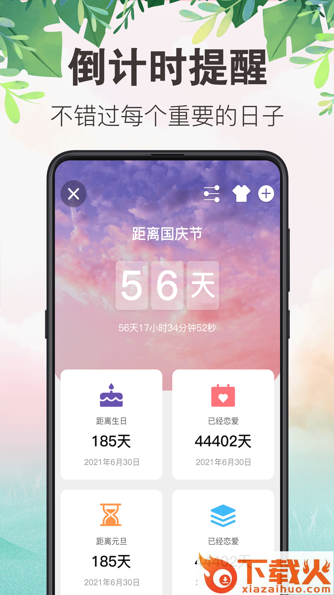 记录恋爱时间,朋友生日,重要日子倒计时提醒。
